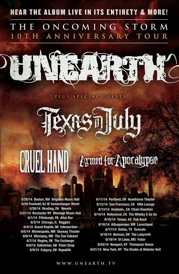 Links: Unearth – Texas In July – Cruel Hand – Armed for Apocalypse – Camp Element – Arcane Haven